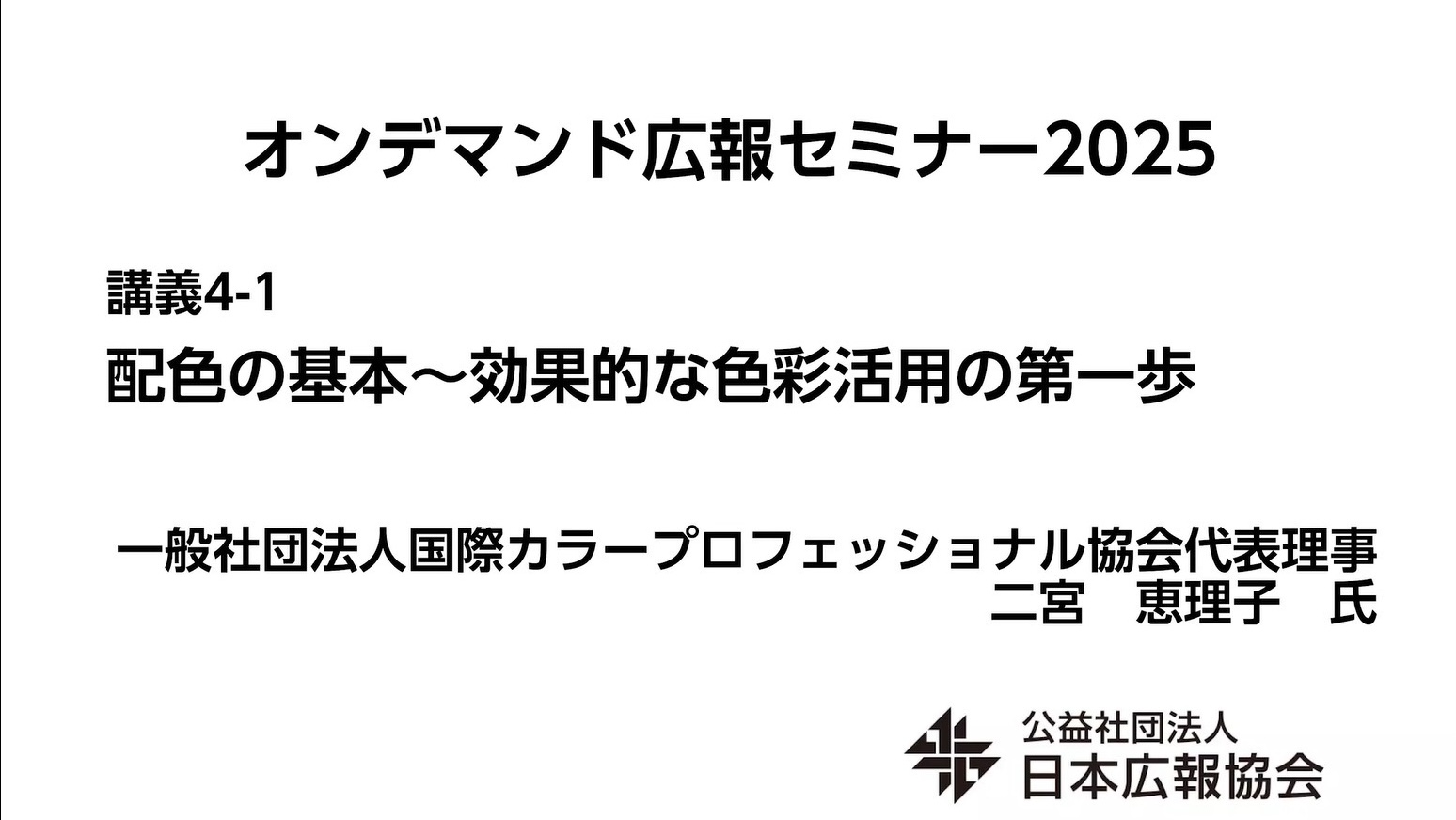 一般社団法人国際カラープロフェッショナル協会代表理事二宮恵理子が公益社団法人日本広報協会にて広報セミナー「配色の基本~効果的な色彩活用の第一歩」を担当しました