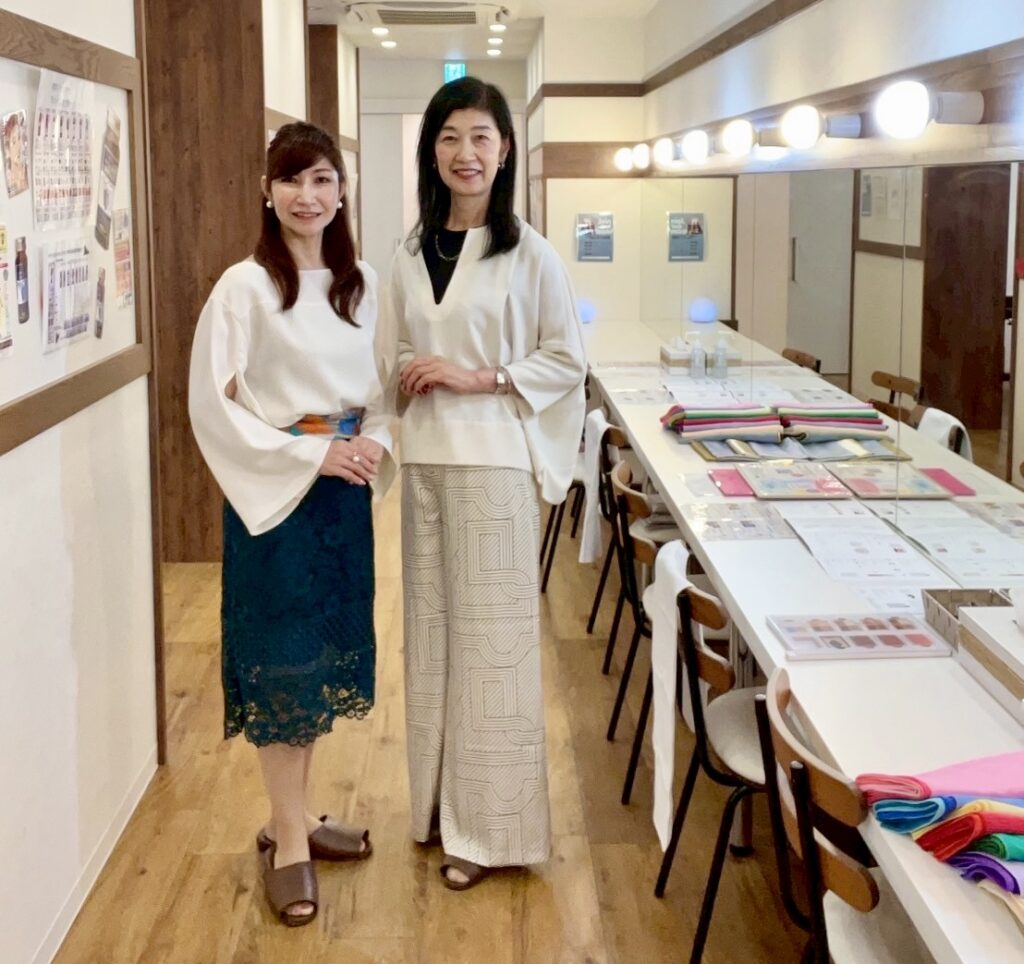 修了後すぐにイベントで経験することはとても大事、一人でも多くの方にドレープ(色布)を当てて、顔の変化を見ることが何よりの学びになります。